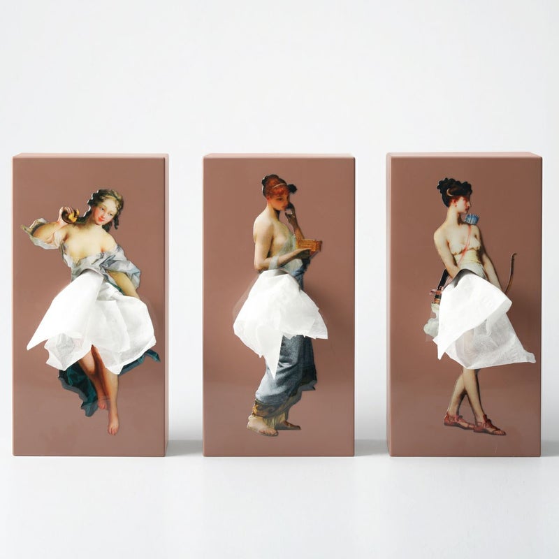 “暮らしに神話を” - 女神と暮らす、美術品のような日用品。ギリシャ・ローマ神話に登場する女神たちをモチーフにした置き型ティッシュケース。ティッシュがふんわりと広がる姿は、まるで女神のスカートのよう。使うたびに、まるで神話のワンシーンに触れるような体験が広がります。
