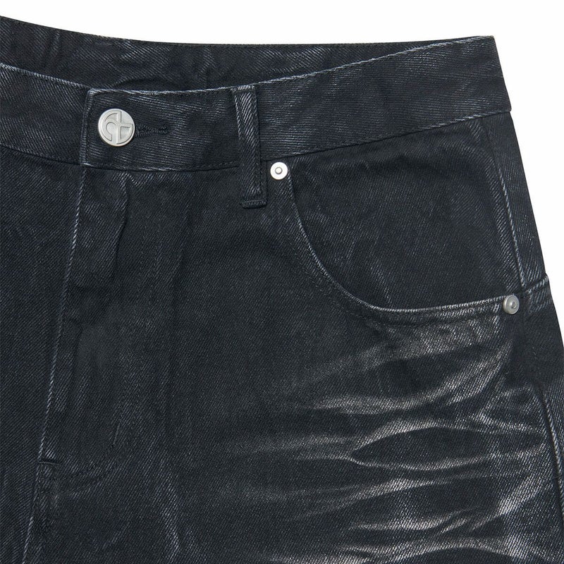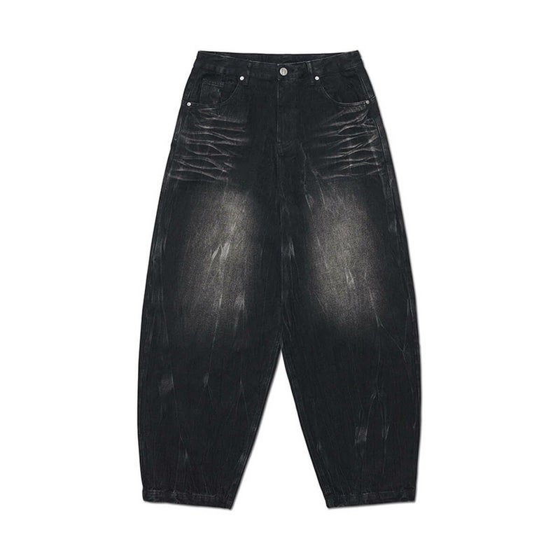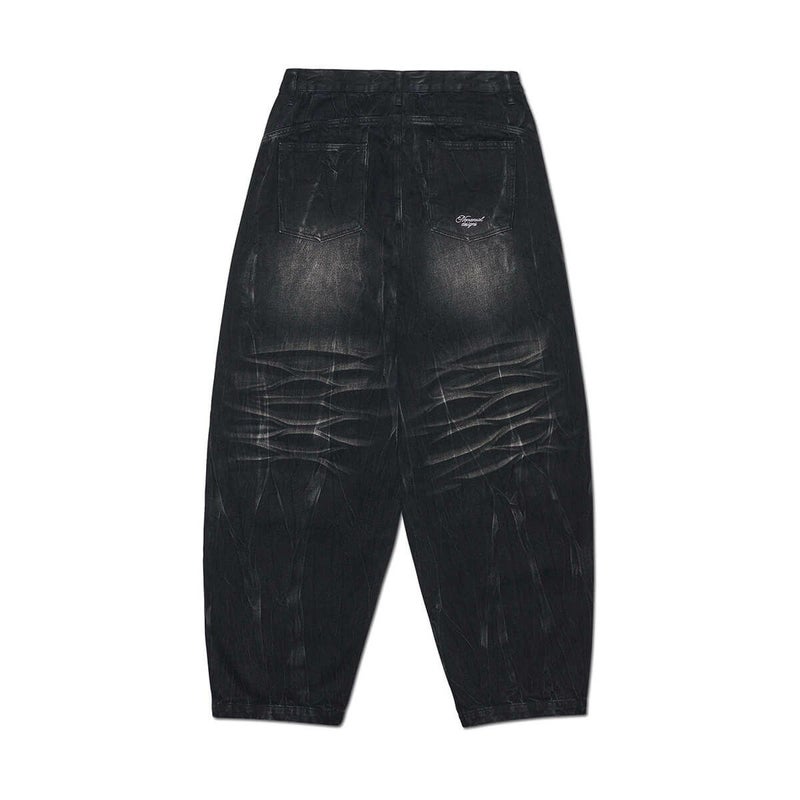 WASHED JUMBO DENIM PANTS - WASHED BLACK