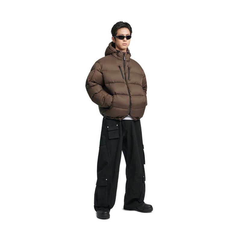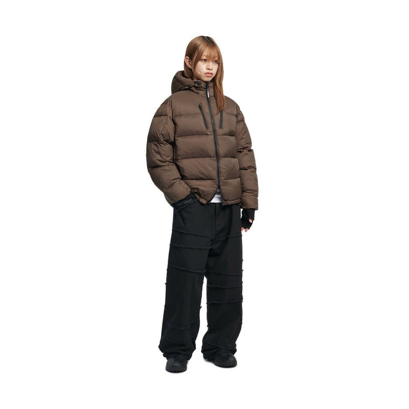 “EMBER(エンバー)”=火種という意味を持つモデル。 袖口のゴムバンド、ネック・裾・フードのアジャスター部分にはドローコードディテールを採用。 フロント胸元には斜めジッパーを配置するなど、全体的にアウトドアディテールから着想を得たデザインです。 2WAYジッパー仕様。 ダックダウン充填量 Lサイズ:320g