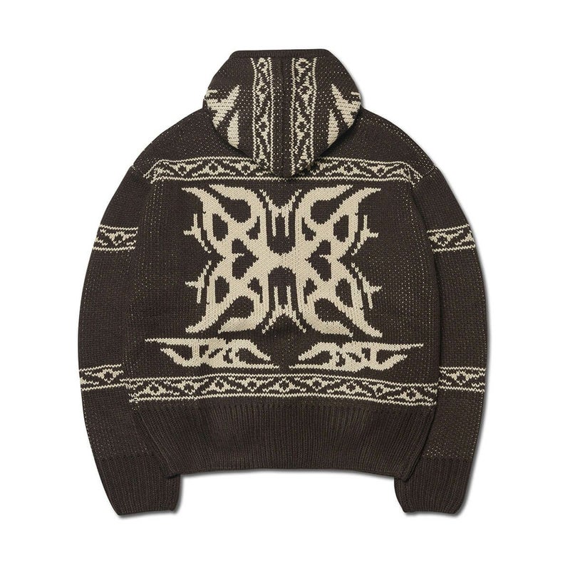 カウチンのムードをNOMANUALらしい感性で再解釈したニットジップアップ。 伝統的なカウチンニットのパターンを、NOMANUAL特有のグラフィックで織り上げ、モダンにアレンジ。 一般的なカウチンニットとは異なり、フードを加えることでよりデイリーでリラックス感のあるシルエットを演出しました。 24FWシーズンに向け、実用性を考慮してポケットディテールを追加。 2WAYジッパー仕様