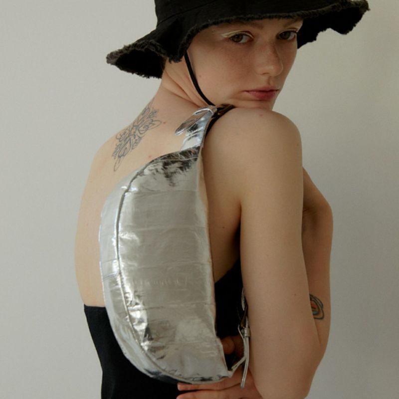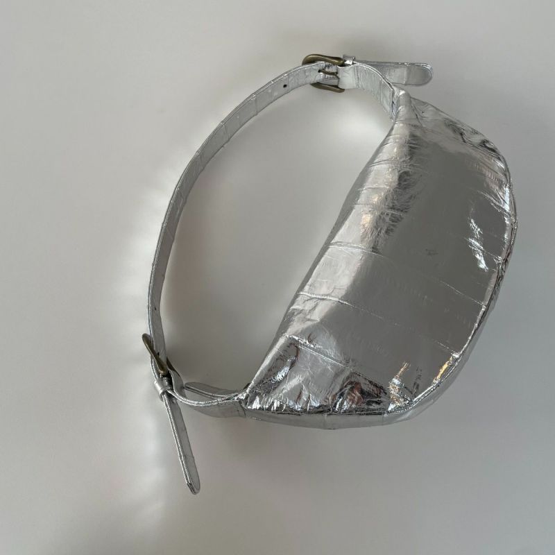 クロワッサンのような可愛いシェイプがポイントのバッグです。