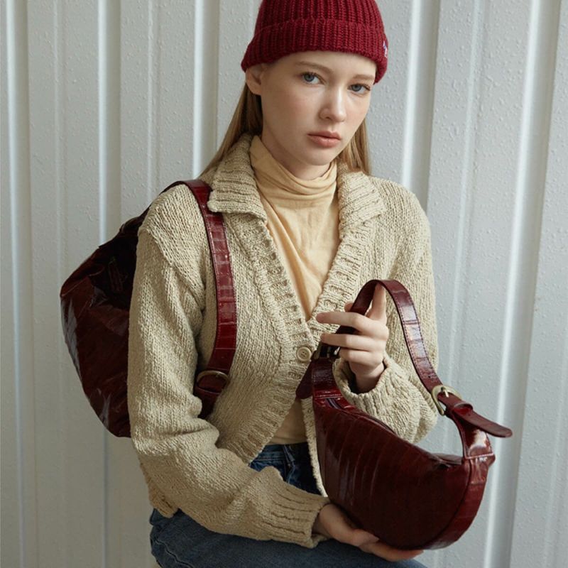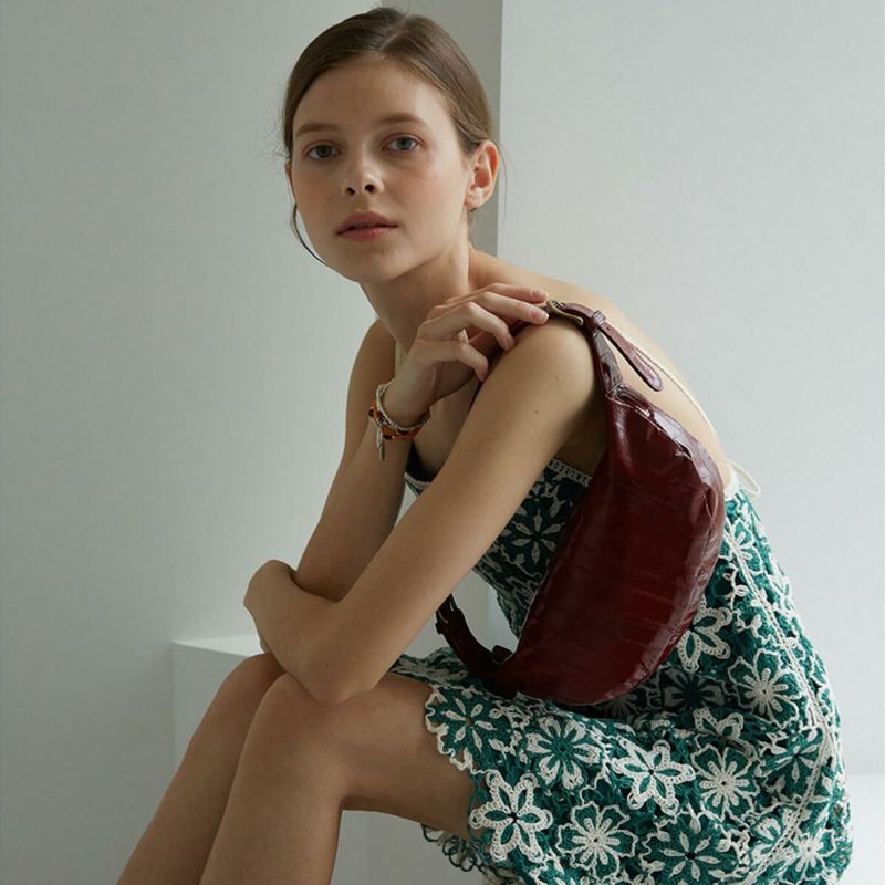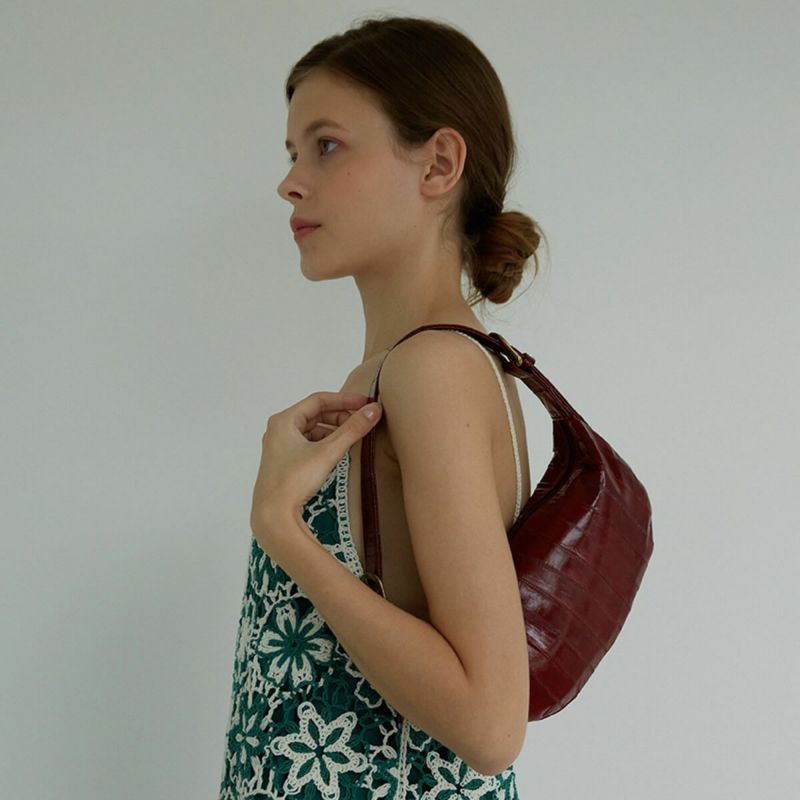 クロワッサンのような可愛いシェイプがポイントのバッグです。