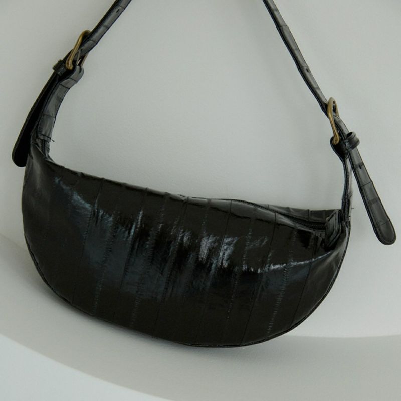 クロワッサンのような可愛いシェイプがポイントのバッグです。