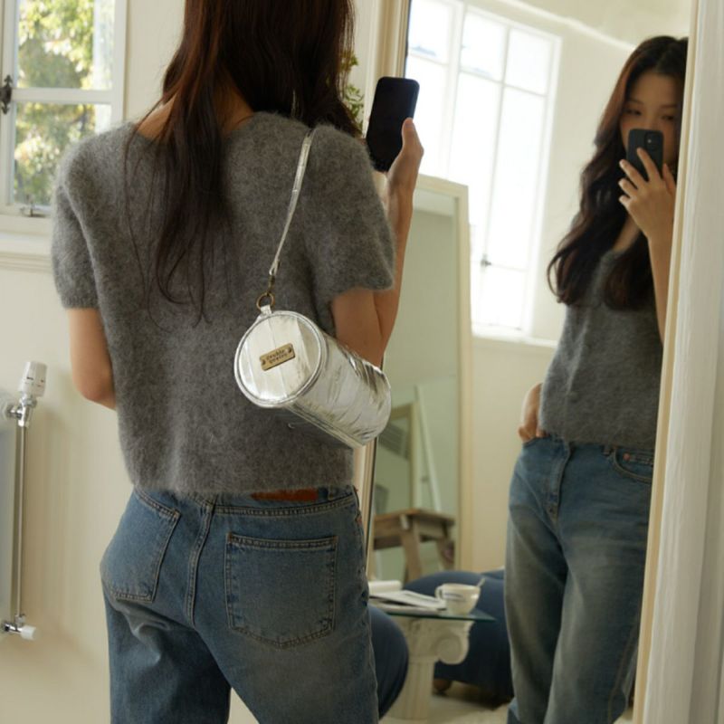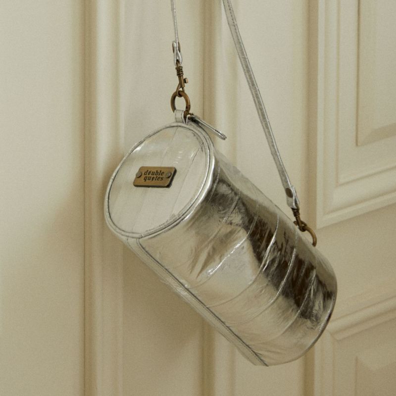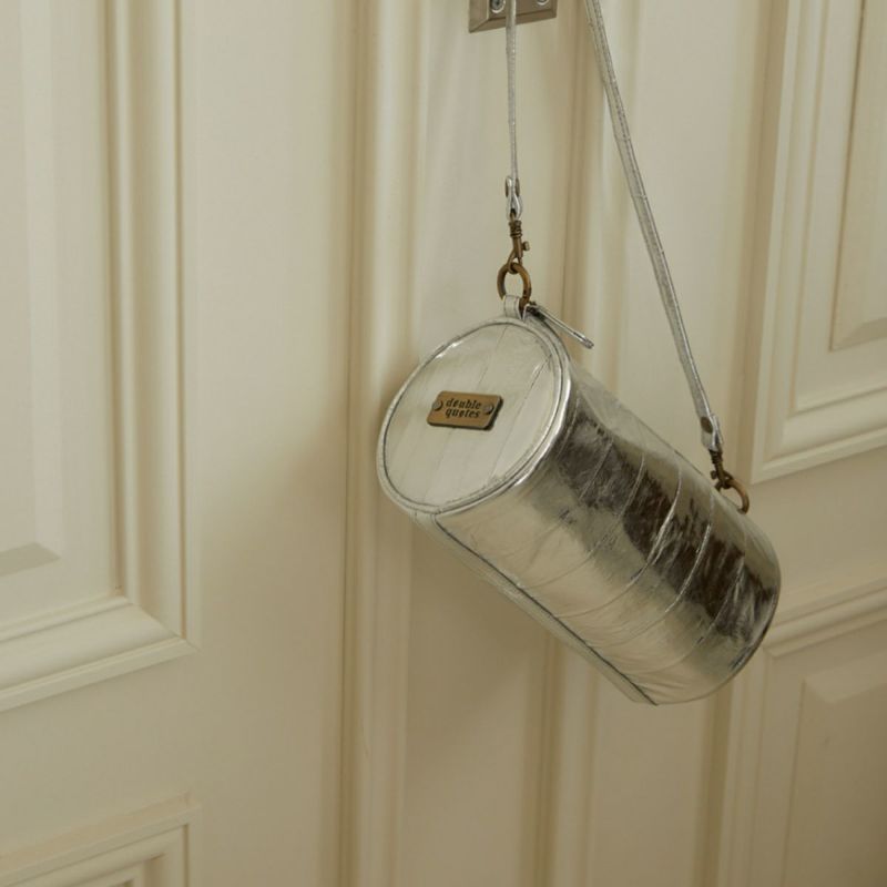 円筒形が可愛いショルダーバッグ。側面中央のメタルプレートロゴがポイントです。