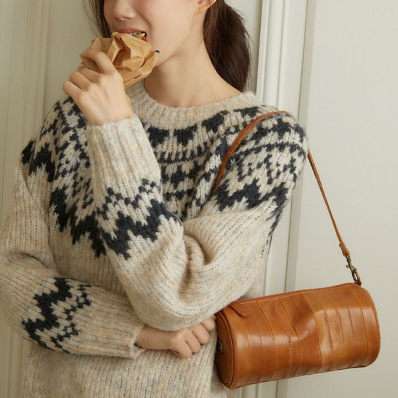 円筒形が可愛いショルダーバッグ。側面中央のメタルプレートロゴがポイントです。