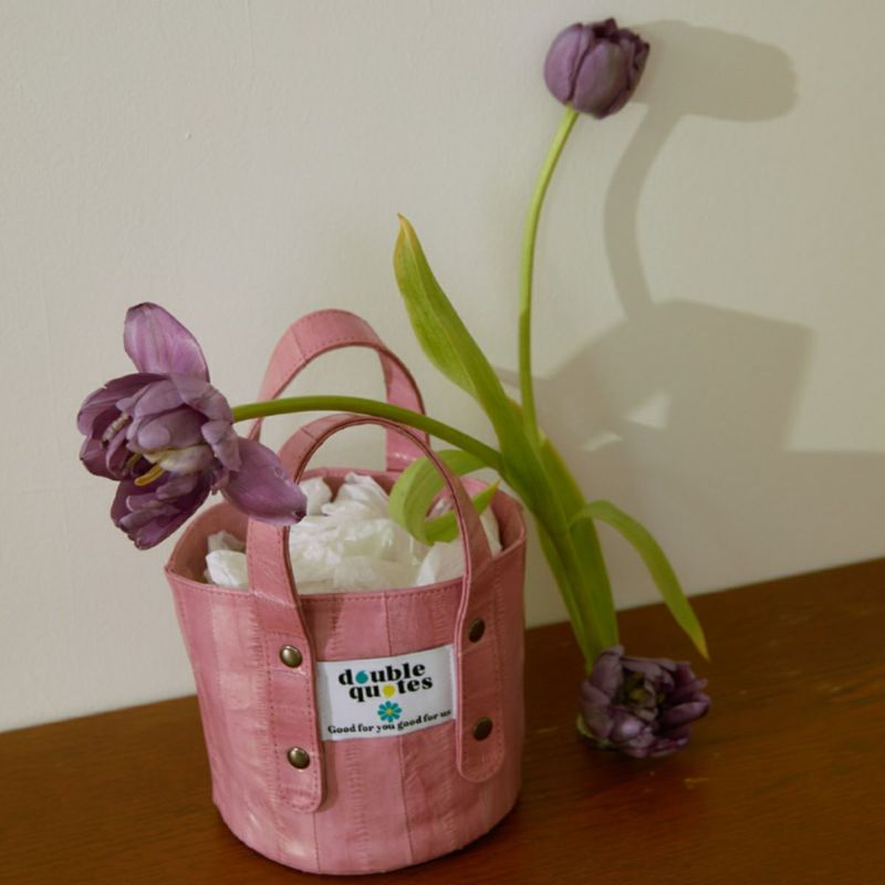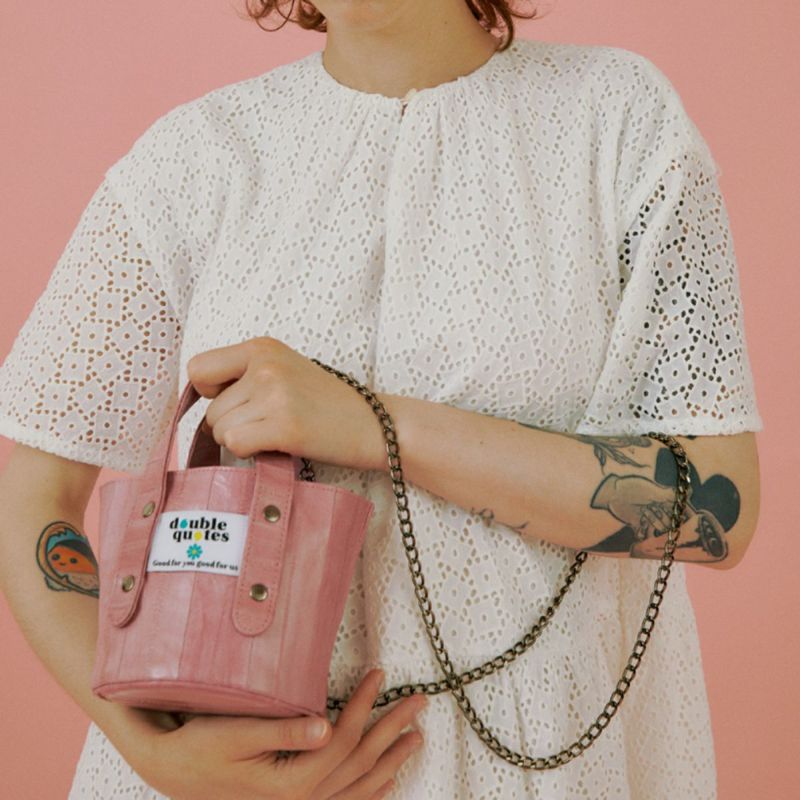 “ダブルクォーツ”はイールスキンのこうしたユニークな特性を生かし、鮮やかな色彩、軽い手触り、多様な用途に重点を置き、独創的で個性的なデザインを重視するブランドを追求しています。
