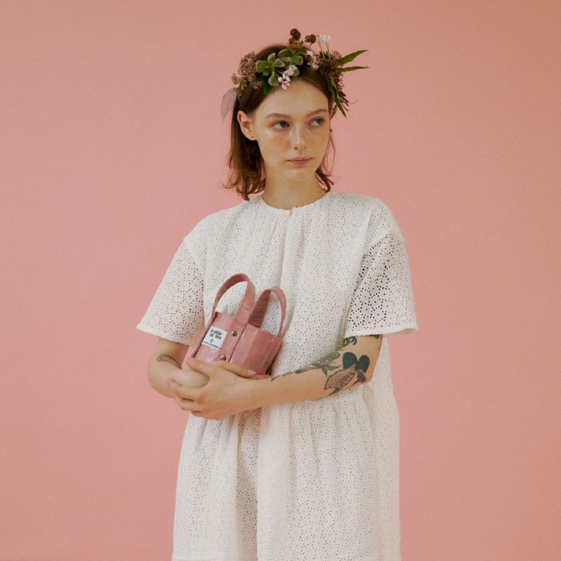 円筒形のシェイプが可愛いマフィンバッグです。底板があるため、物を入れても形が壊れることはありません。