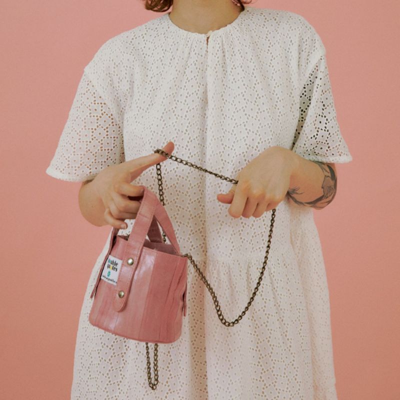 普段は小さなハンドバッグですが、メタルチェーンストラップを繋げればショルダーバッグにもなります。