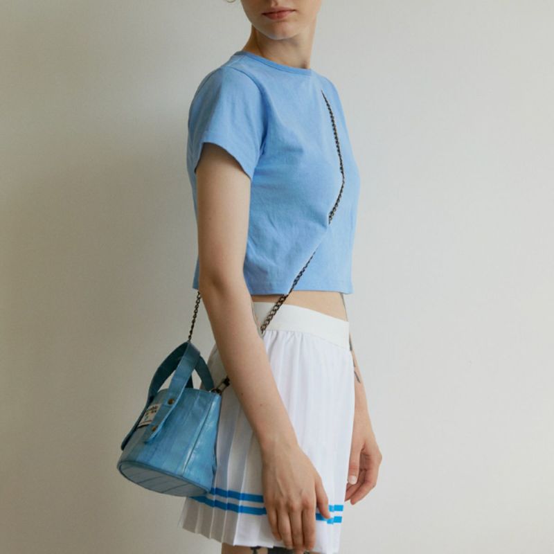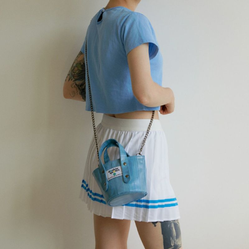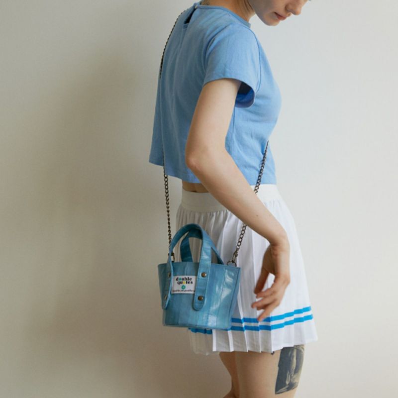 普段は小さなハンドバッグですが、メタルチェーンストラップを繋げればショルダーバッグにもなります。