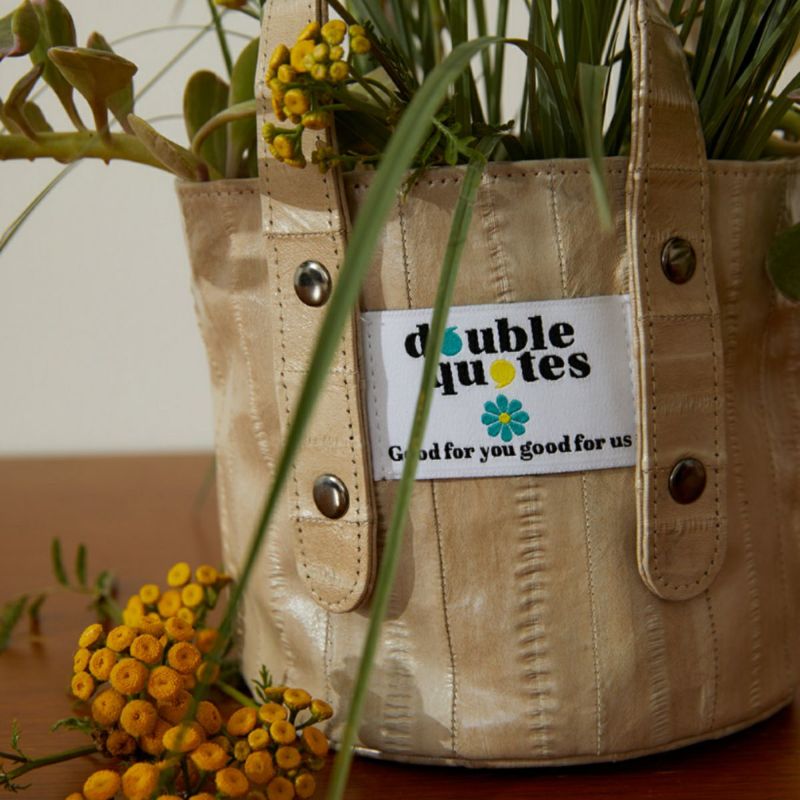 “ダブルクォーツ”はイールスキンのこうしたユニークな特性を生かし、鮮やかな色彩、軽い手触り、多様な用途に重点を置き、独創的で個性的なデザインを重視するブランドを追求しています。