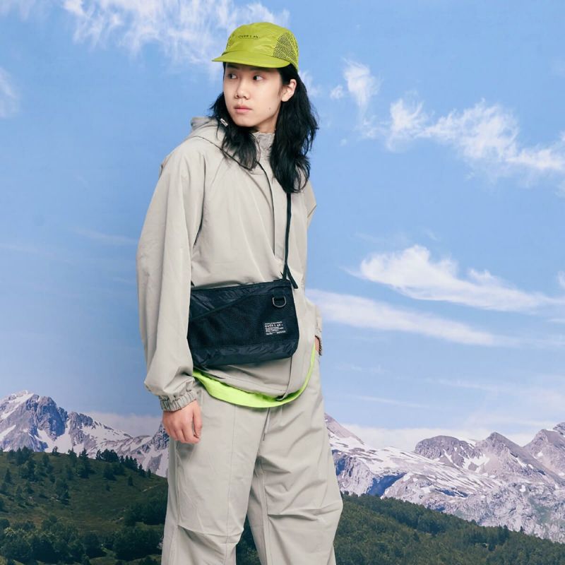 頻繁に取り出す小物を簡単に保管できるメッシュポケットが特徴のサコッシュバッグです。
