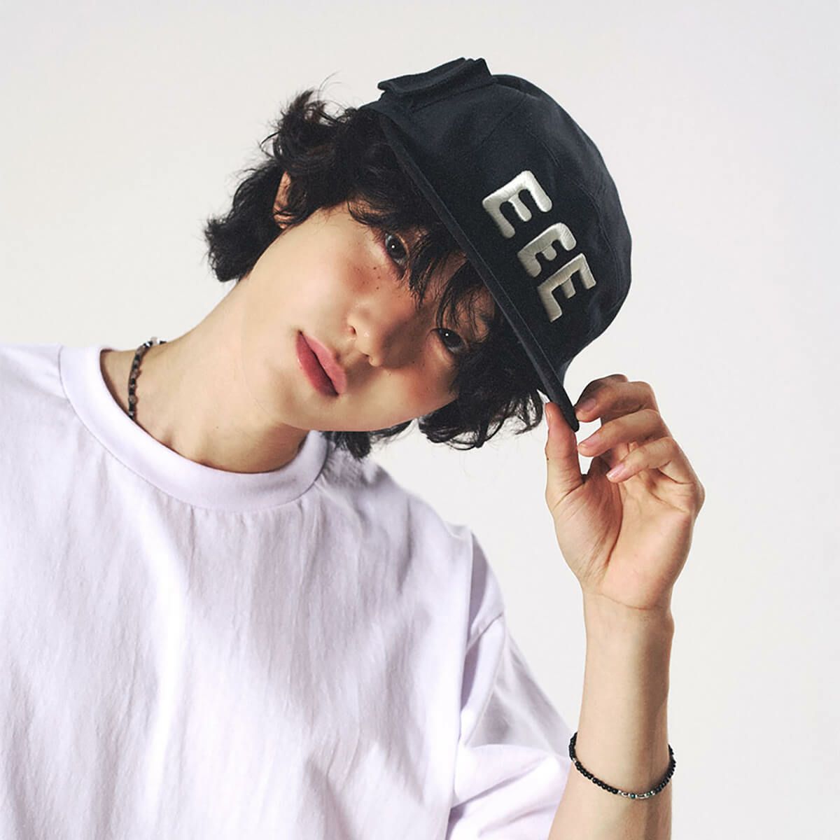 「ポケットキャンプキャップ」は、右サイドに配されたポケットディテールが特徴的で、小物の収納が可能。フロントにはインパクトあるEEEレタリングを大胆にデザインした、目を引くキャップです。