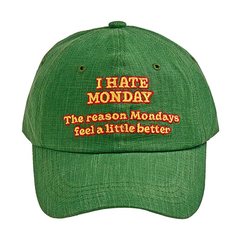 「I HATE MONODAY」の刺繍が入ったボールキャップ。このキャップをかぶれば、少しだけ月曜日が楽しくなるかもしれません。柔らかなフィット感とリアストラップで、どなたでも楽しく自然に着用いただけます。