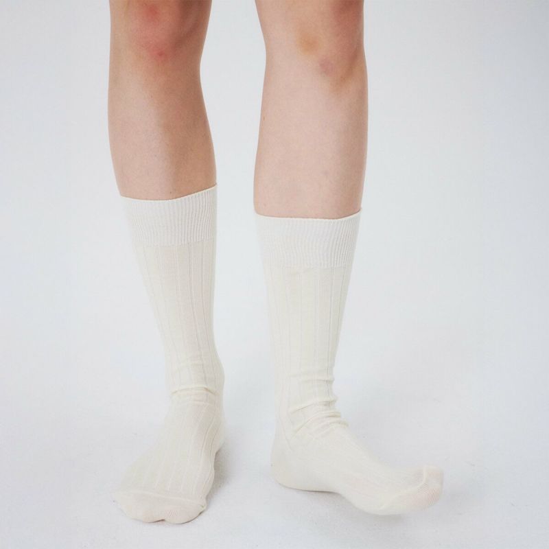 シルケット糸で作られ、ほのかな光沢と柔らかな触感が特徴のソックスです。ほどよい長さで、フォーマルなルックにぴったりなスタイリングが可能です。