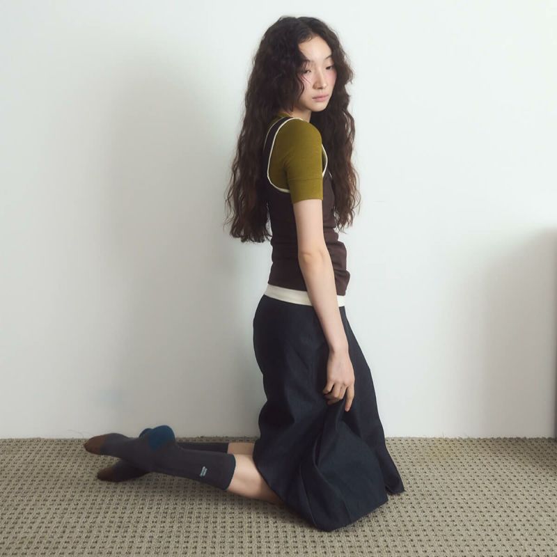 片方には曜日、もう片方には「I HATE MONDAY」の文字が、それぞれ異なるカラーの刺繍で施されています。高級コーマ糸を使用しており、快適で心地よい履き心地を実現しました。ヴィンテージ感のある秋カラーで、デイリースタイリングにも最適です。