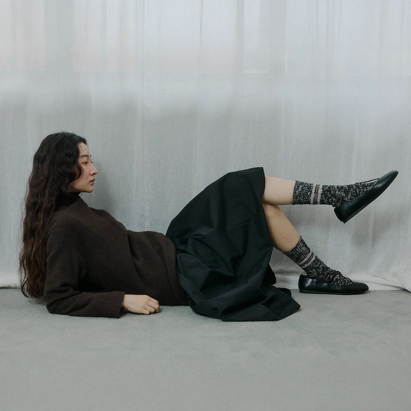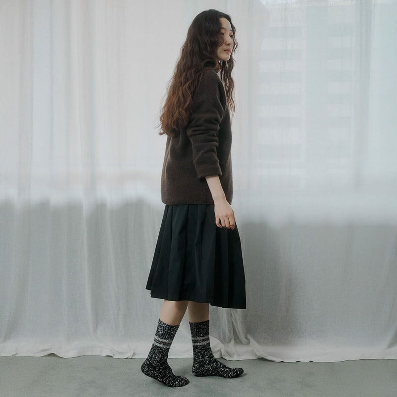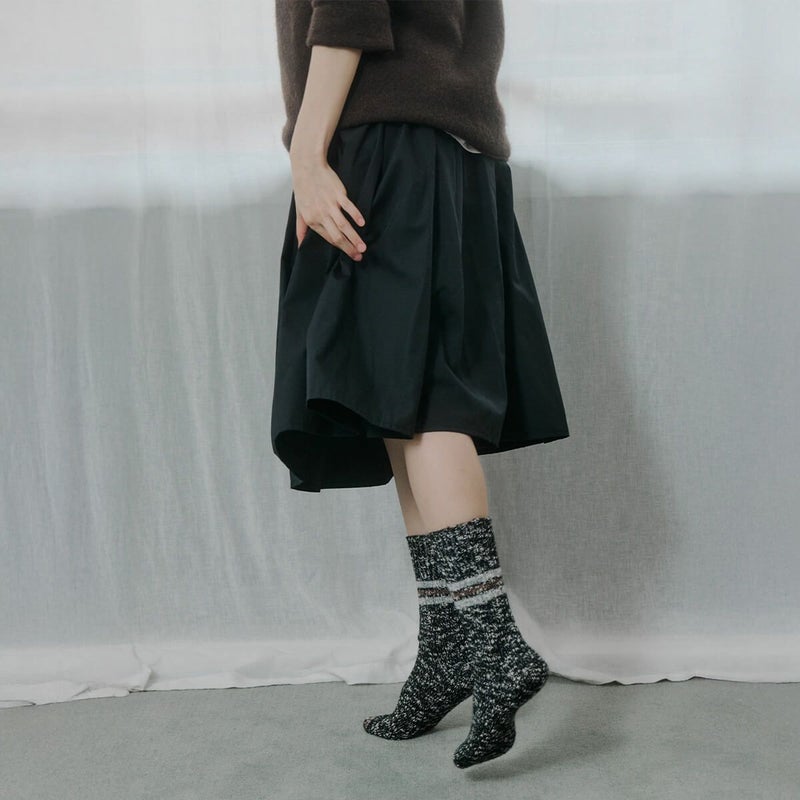 昔ながらのラインソックスを秋冬使用に。厚めな質感と少し長めなデザインで、幅広いコーディネートで活躍します。