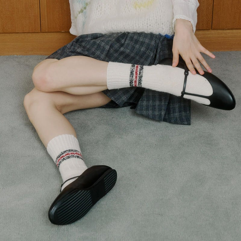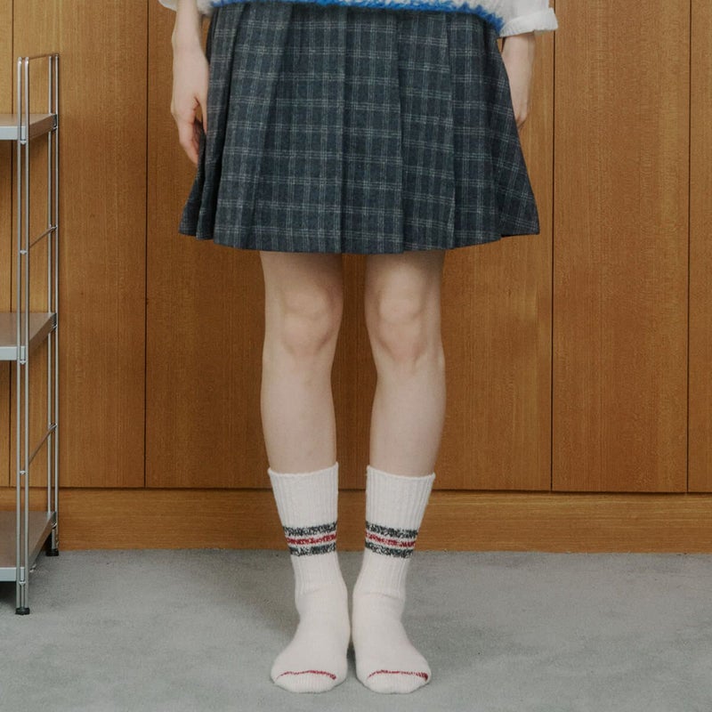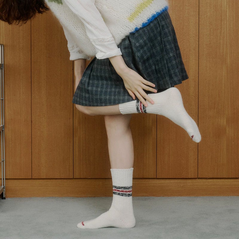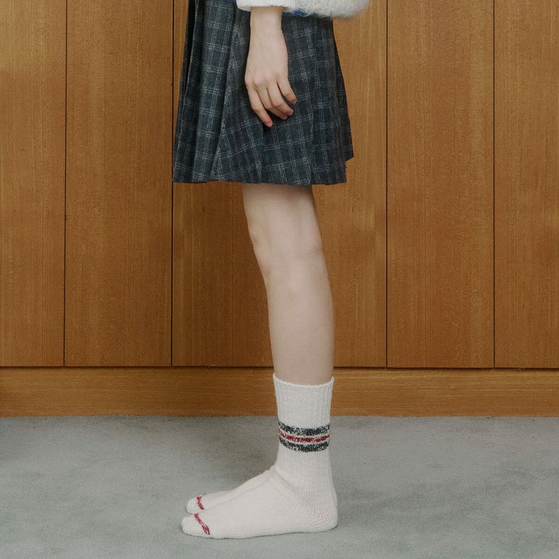 昔ながらのラインソックスを秋冬使用に。厚めな質感と少し長めなデザインで、幅広いコーディネートで活躍します。