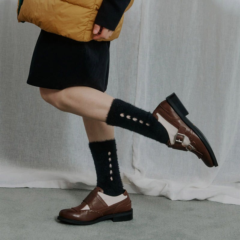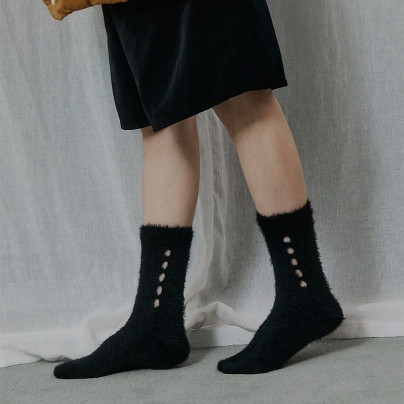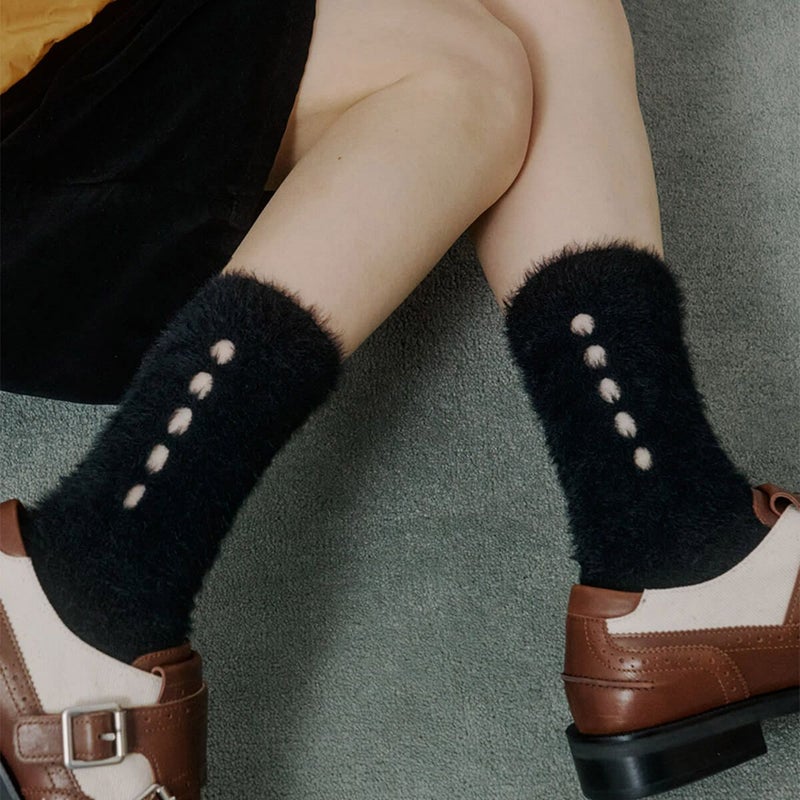 もこもこでふわふわな、”まるで雲”のような靴下。サイドのアクセントもかわいらしいデザインです。
