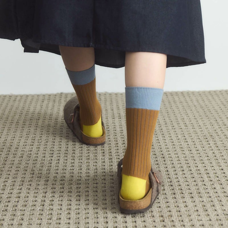 履いたとき、リブの間からさりげなくのぞくカラーがポイントのソックスです。高級コーマ糸を使用しており、柔らかな肌触りとしっかりとした耐久性を兼ね備えています。