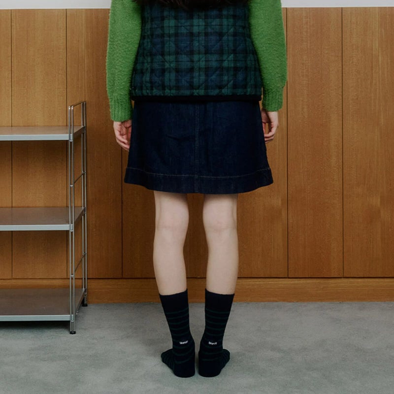 あたたかな素材で作られたストライプソックス。ブランドロゴがアクセントになっています。