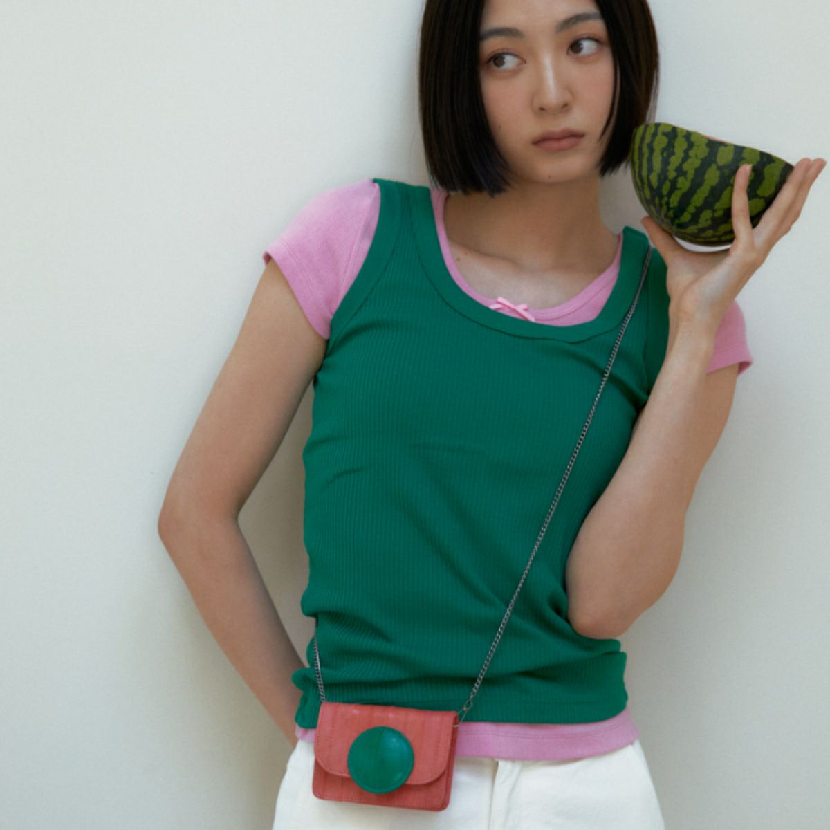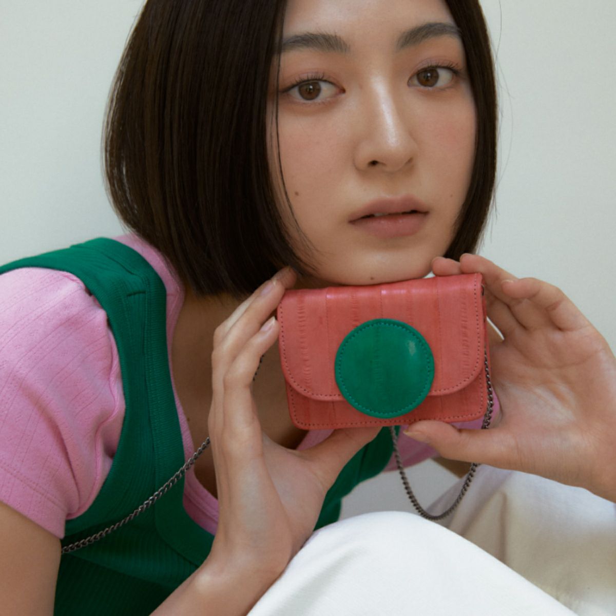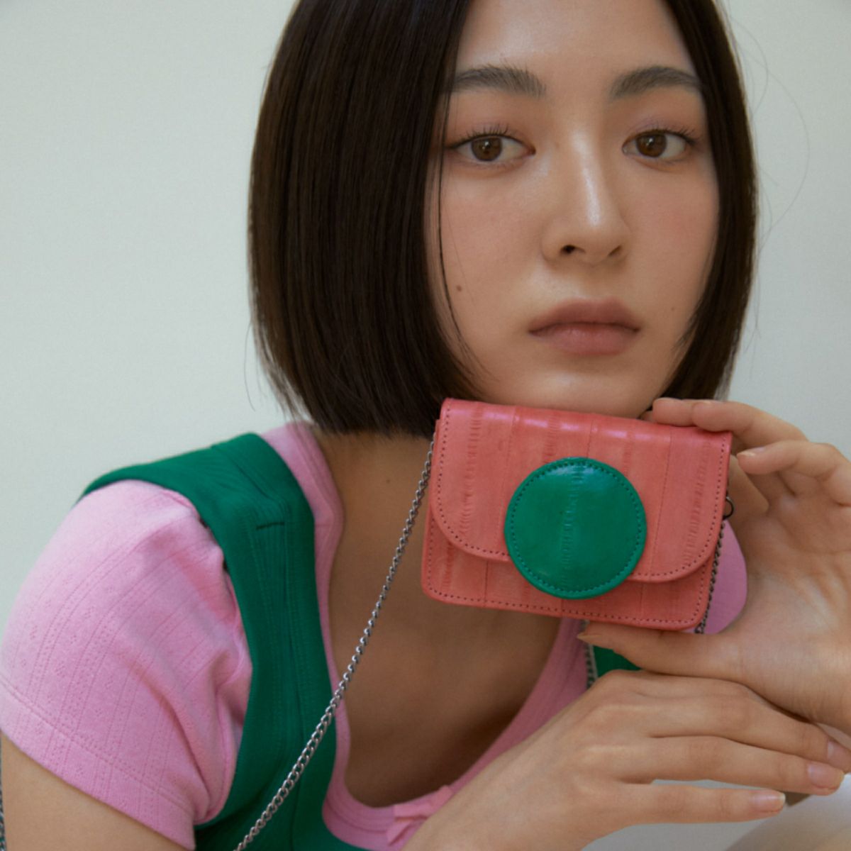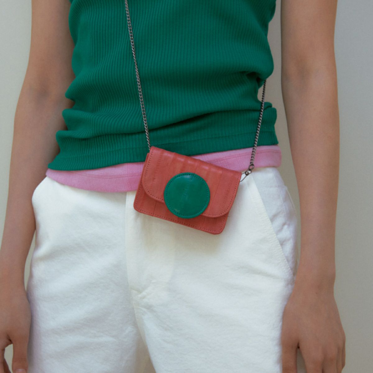 Macaron wallet mini bag Coral/Green