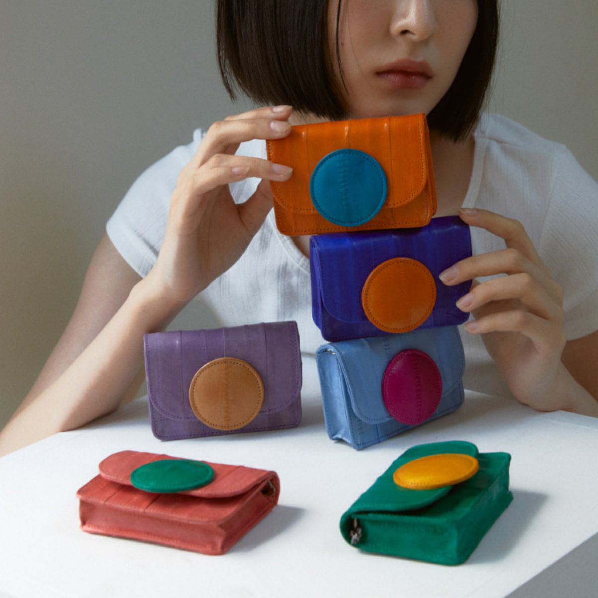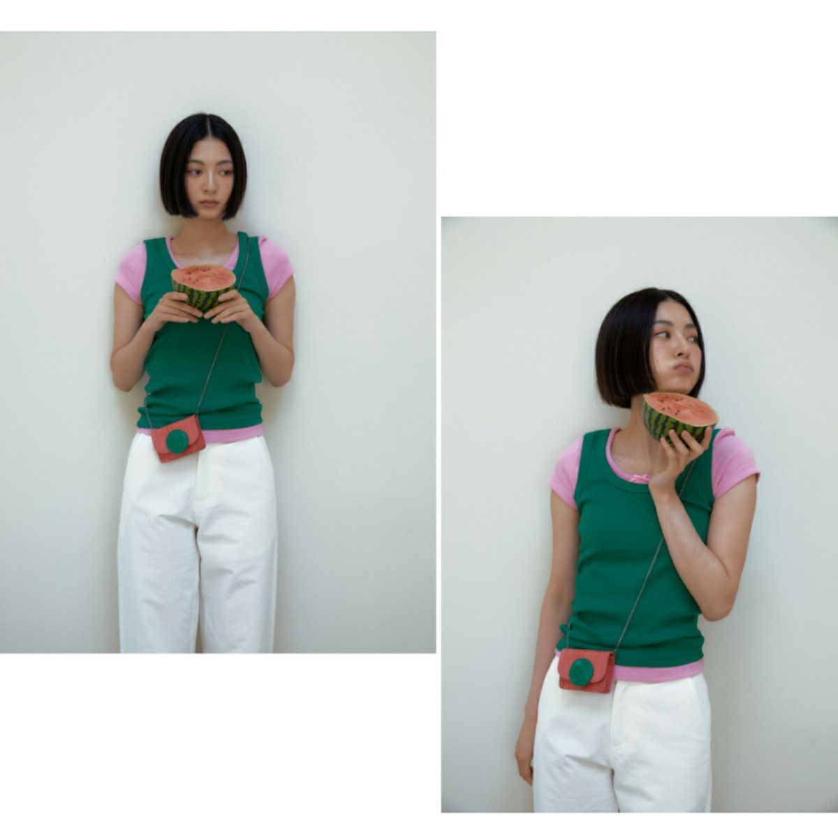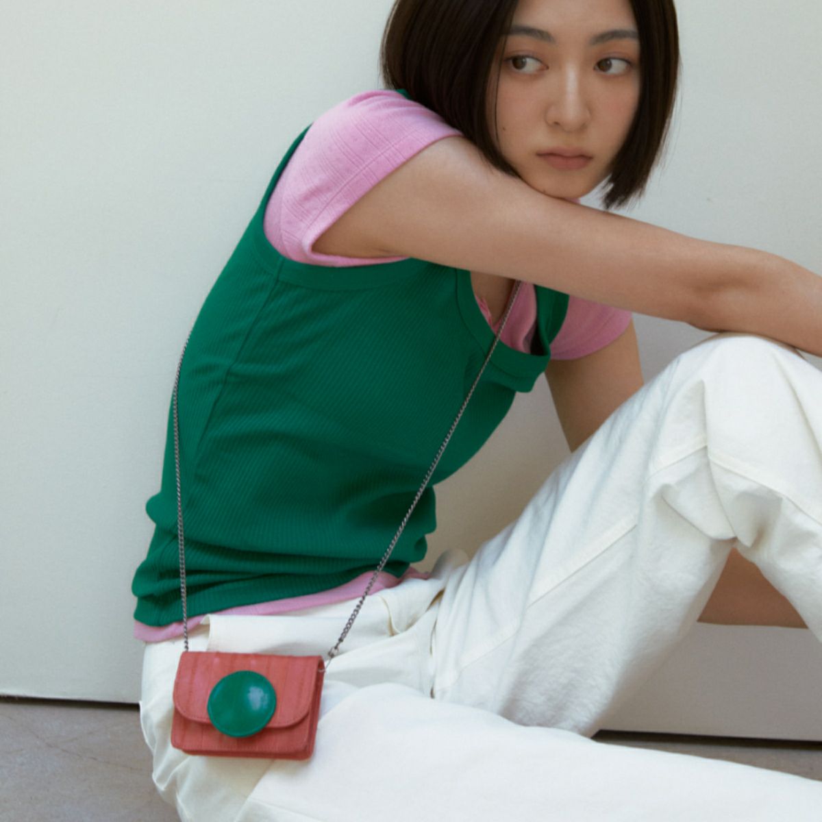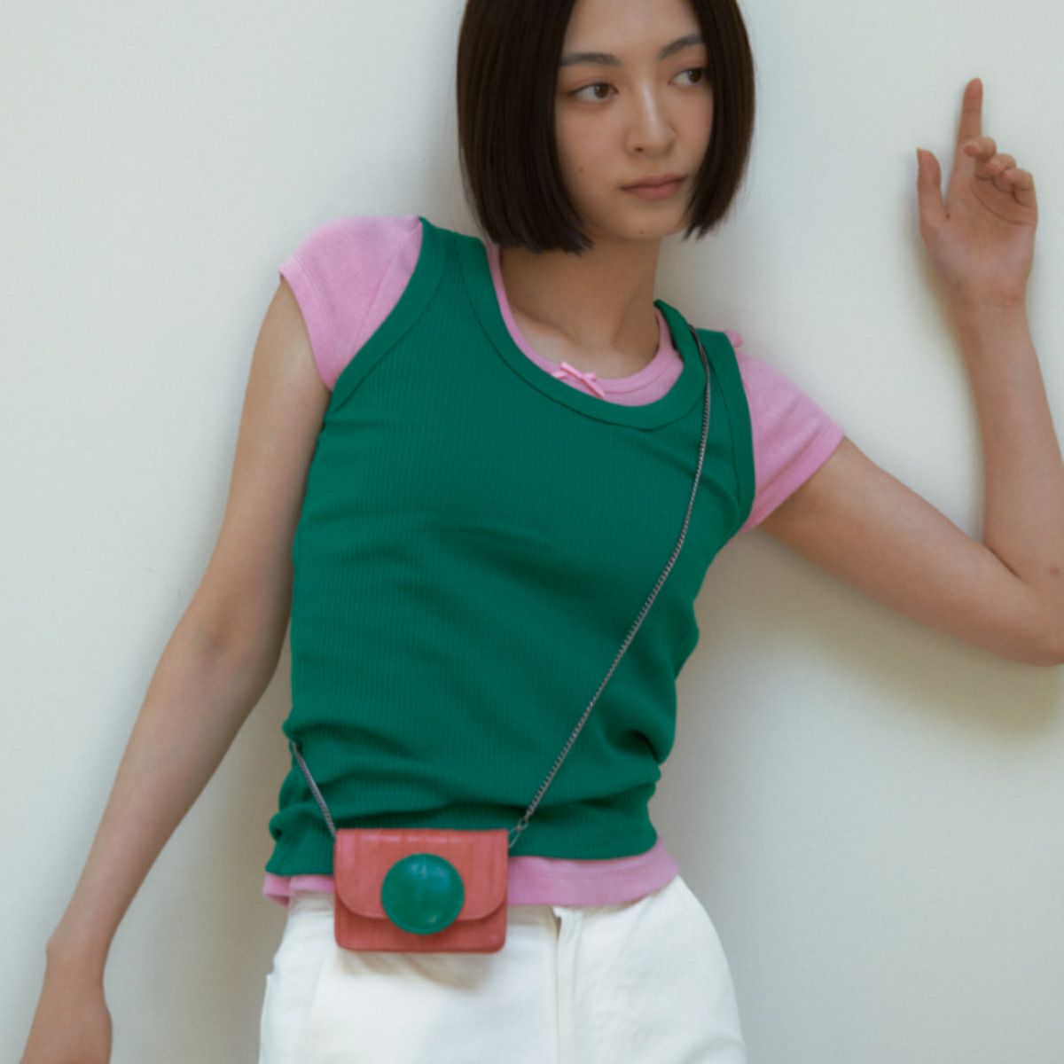 Macaron wallet mini bag Coral/Green