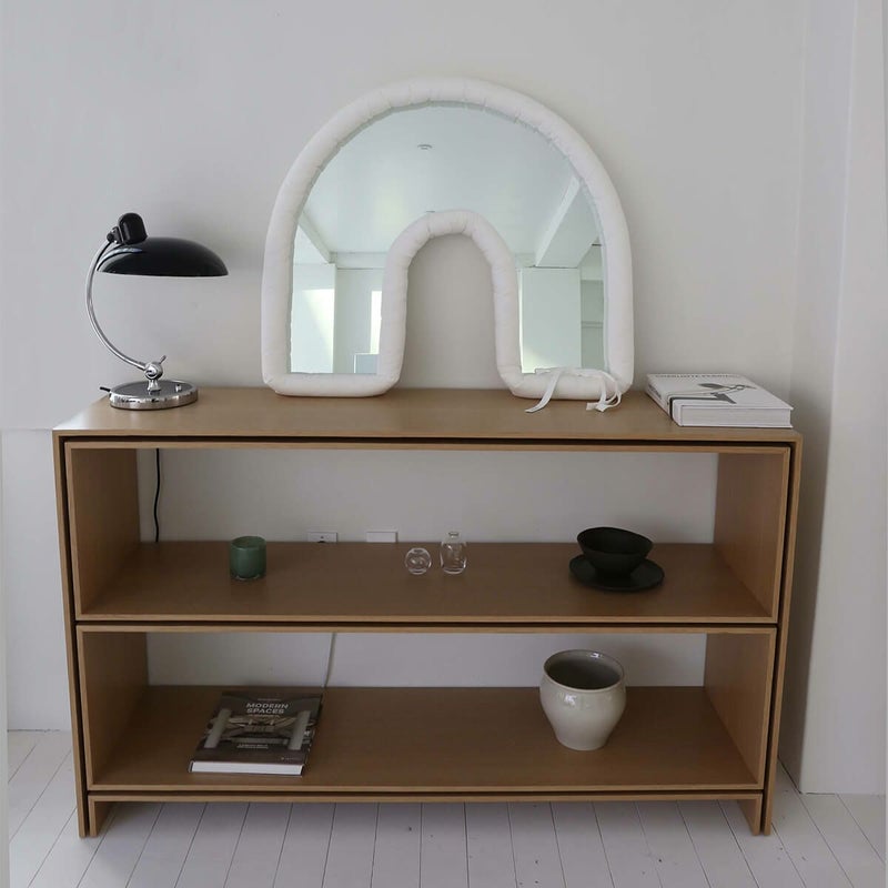 「U」型のミラーは、その中央に毎日自分が大切にしたい物を飾り、使うことで、空間に個性と意味をもたらす独自のデザインです。