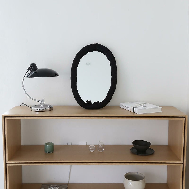oval cushion mirror black