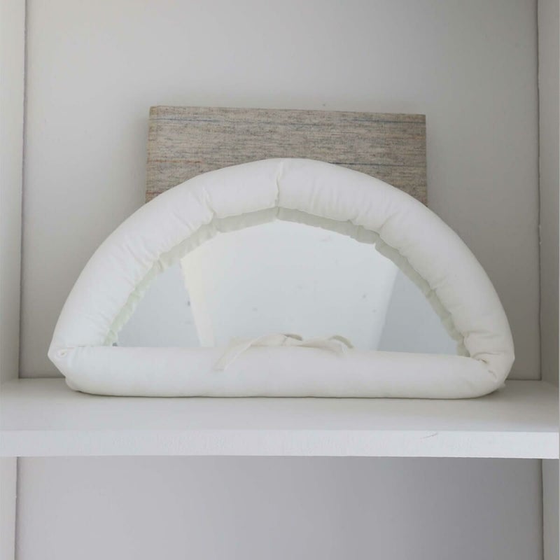 ふんわりと柔らかな綿素材が鏡の縁を包み込み、まるでクッションのような心地よさを感じさせます。