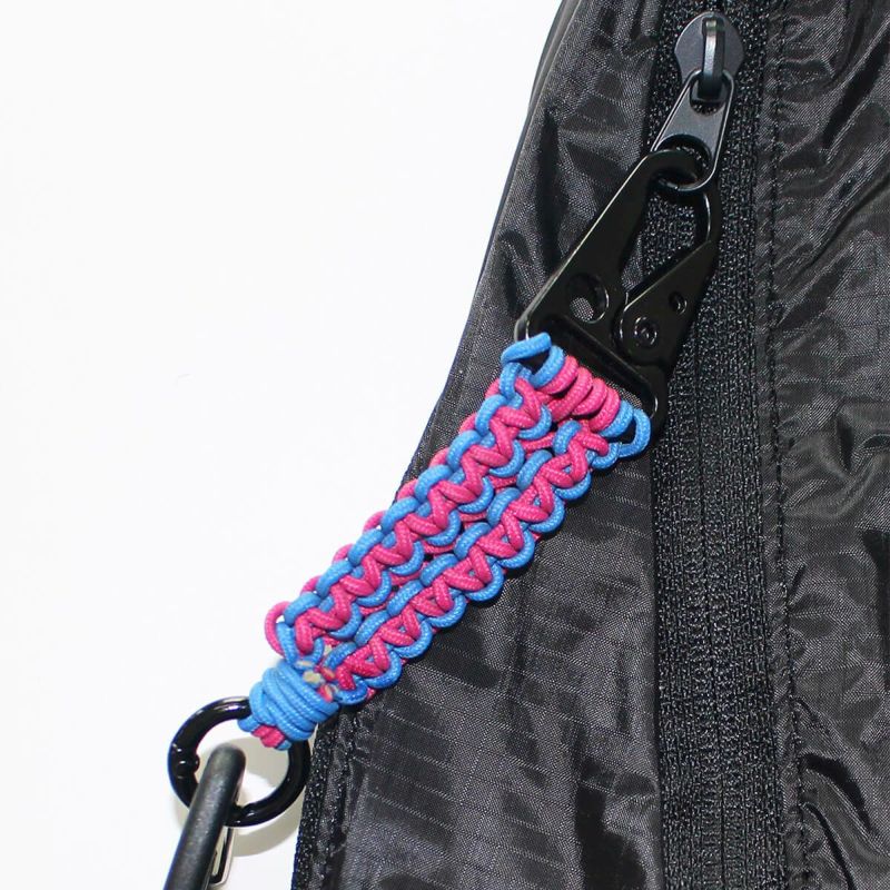 パラグライダーのロープで作られており、重い荷重にも耐えられるうえ、上下異なる形のフックがついており、高い実用性を誇ります。