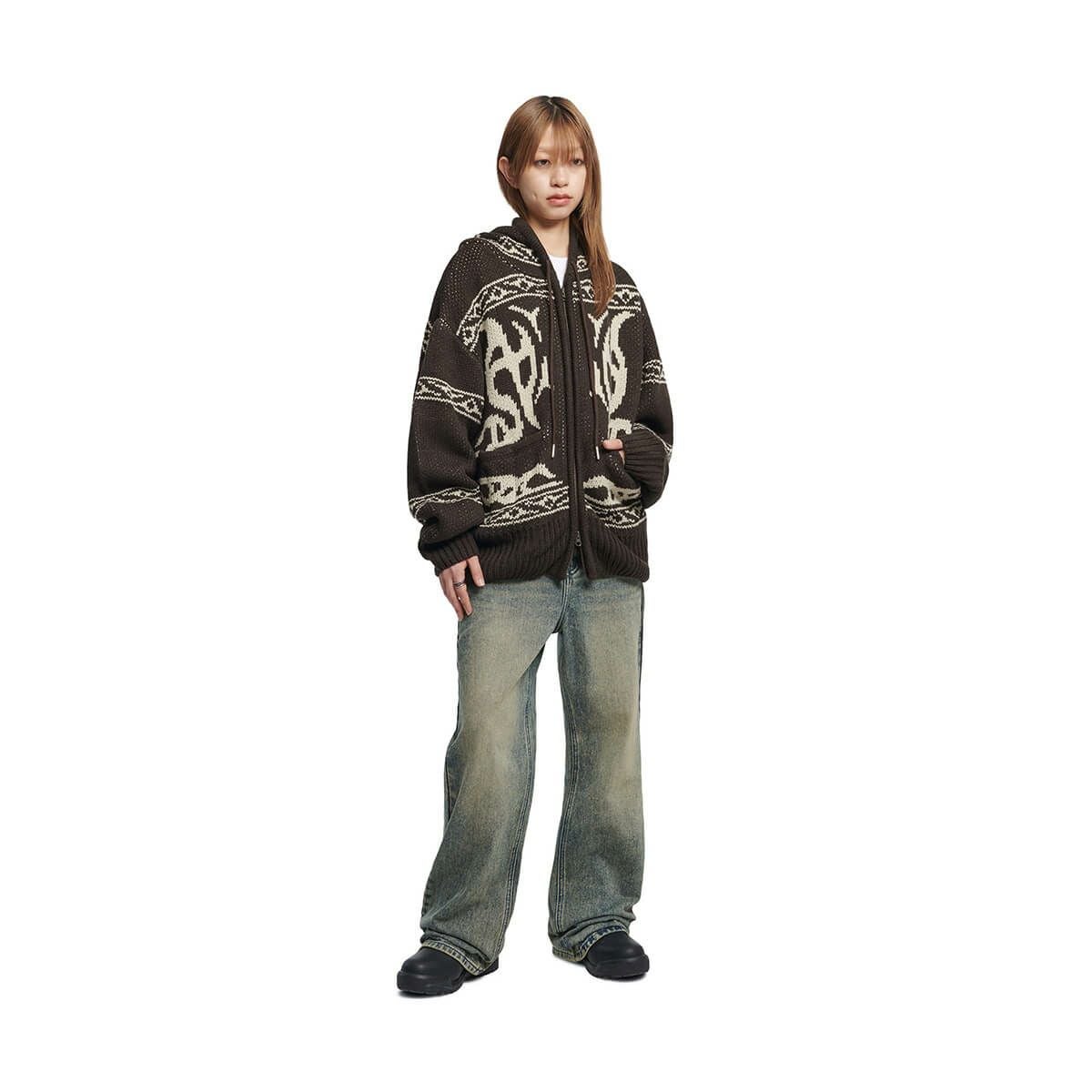 COWICHAN HOODED ZIP-UP - BROWN