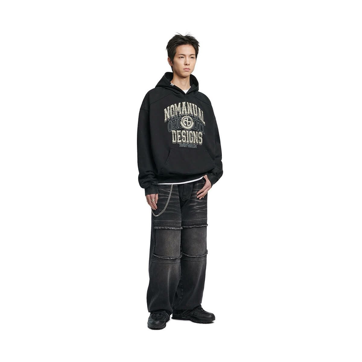 LAYERED ARCH GRAPHIC HOODIE - WASHED BLACK