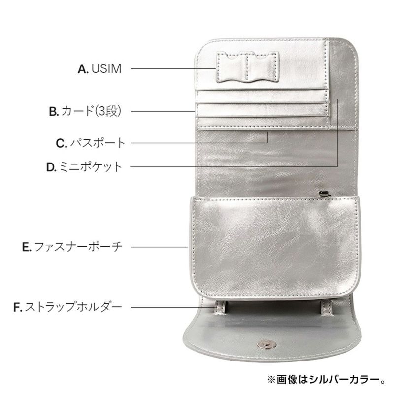 パスポートケースの機能を融合し、様々な持ち物を収納できるよう設計された2WAYミニバッグ。チェーンストラップが付属します。