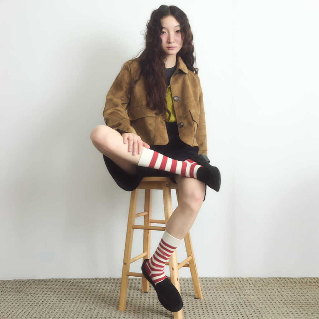 ブランドのシグネチャーデザインとして親しまれるボーダーパターンは、左右で異なる幅を持たせることでユニークさを演出。豊富なカラーバリエーションと上質な履き心地により、日常を彩るアイテムとして幅広い層にお楽しみいただけます。